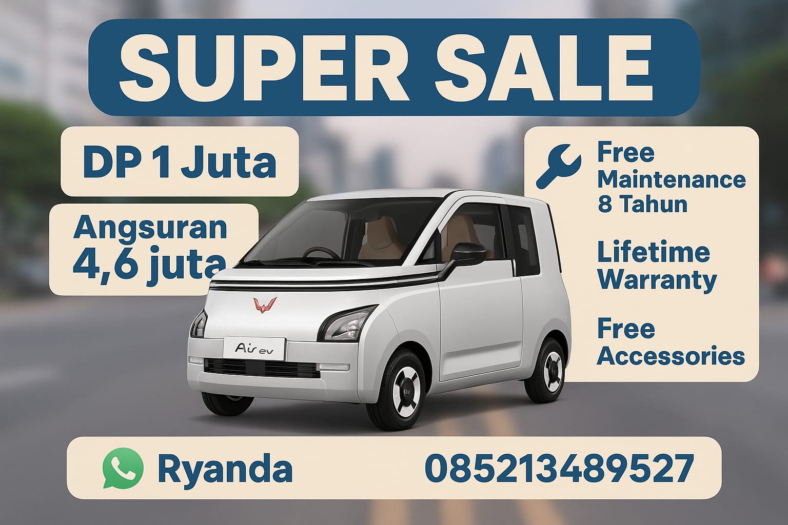 🌟 WULING AIR EV – MOBIL LISTRIK MASA DEPAN, HEMAT & STYLISH! Ingin mobil yang stylish, ramah lingkungan, dan praktis untuk keseharian? Wuling Air ev…
