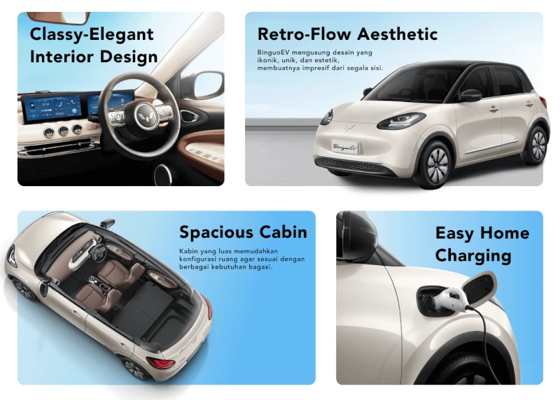 Wuling Binguo EV hadir dengan desain retro-modern yang memikat, teknologi canggih, dan performa ramah lingkungan. Mobil listrik ini bukan hanya alat transportasi, tapi juga gaya hidup masa depan.